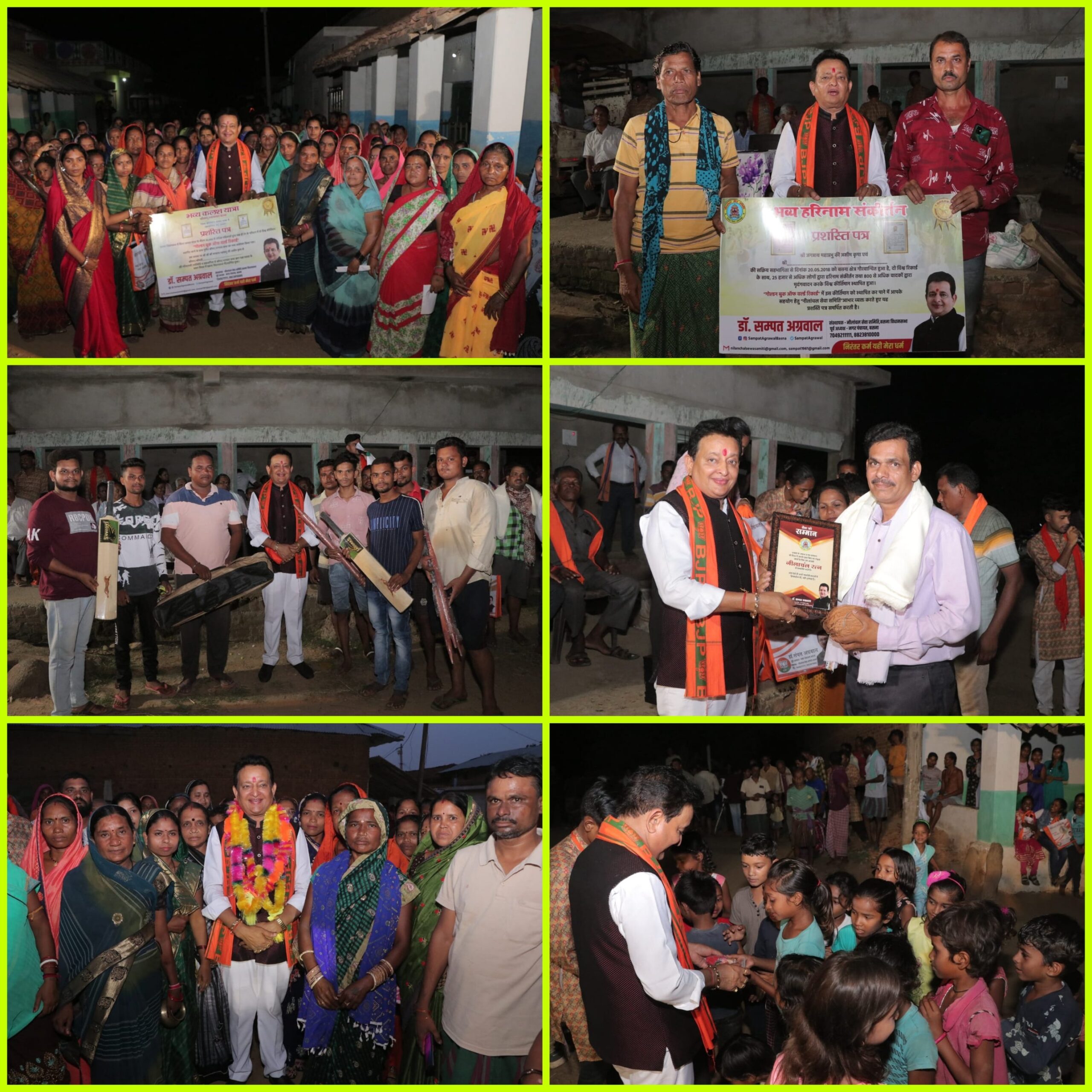 इस अवसर पर नीलांचल सेवा समिति के संस्थापक भाजपा नेता डॉ. सम्पत अग्रवाल के द्वारा छोटे-छोटे बच्चों का, बुजुर्ग महिला एवं पुरुषों, वरिष्ठजनों, ग्राम प्रमुखों का शाल श्रीफल व मोमेंटो से तथा 20 मई 2018 को आयोजित भव्य हरिनाम संकीर्तन यज्ञ के सहभागी किर्तन दलों,16 जनवरी 2023 को आयोजित श्रीमद्भागवत ज्ञान यज्ञ कथा के सहभागी माता बहनों का, छात्र छात्राओं का शाल, श्रीफल व मोमेंटो, प्रशस्ति पत्र से सम्मान किया गया तथा ग्राम के खिलाड़ियों का सम्मान करते खेल किट प्रदान किया गया। साथ ही साथ ग्रामवासियों की समस्याओं व सुझाव पर मंथन किया गया।